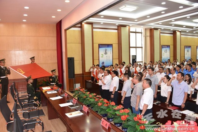 黨委副書記文云領(lǐng)誓,預(yù)備黨員和轉(zhuǎn)正黨員集體宣誓,全體黨員重溫了入黨誓詞。