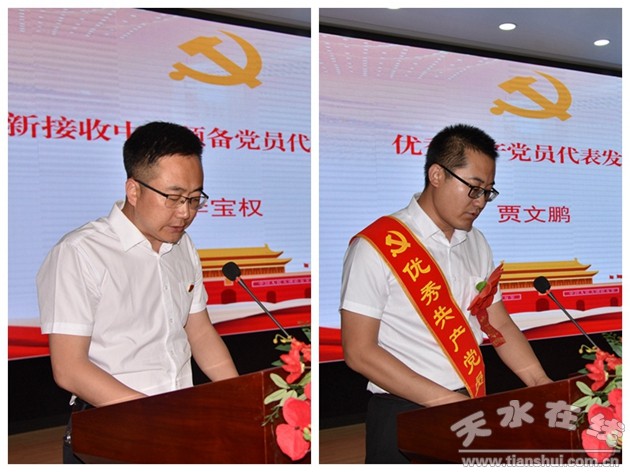 隨后,新黨員代表李寶權(quán)、優(yōu)秀共產(chǎn)黨員代表賈文鵬分別作了發(fā)言。