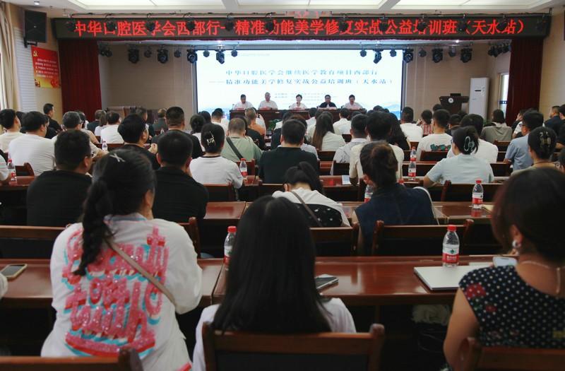 8月22日至23日,由中華口腔醫(yī)學會修復學專業(yè)委員會和甘肅省口腔醫(yī)學會主辦,蘭州大學口腔醫(yī)院和天水市中西醫(yī)結(jié)合醫(yī)院(市二院)承辦的中華口腔醫(yī)學會西部行——精準功能美學修復實戰(zhàn)公益繼續(xù)教育培訓班(天水站)、甘肅省口腔醫(yī)學會口腔修復學專業(yè)委員會第2次口腔修復學學術(shù)會議暨數(shù)字化種植修復技術(shù)的臨床應用繼續(xù)教育省級培訓班在市二院多功能廳成功舉辦。中華口腔醫(yī)學會口腔修復學專業(yè)委員會主任委員于海洋教授及其帶領的專家團隊;中山大學附屬口腔醫(yī)院王焱、滕偉等教授;廣州醫(yī)科大學附屬口腔醫(yī)院李江、吳哲教授和蘭州大學口腔醫(yī)學院劉斌、張凱亮教授等全國知名專家應邀蒞臨現(xiàn)場并授課。特邀市政府黨組成員、副市長汪小娟,市衛(wèi)生健康委黨組書記、主任王定新和市二院黨委書記曹寶國蒞臨現(xiàn)場并作致辭講話。開班式由市二院院長唐志鋒主持。市二院班子成員,省內(nèi)各級醫(yī)療機構(gòu)口腔科及口腔診所醫(yī)務人員代表約160余人參加。