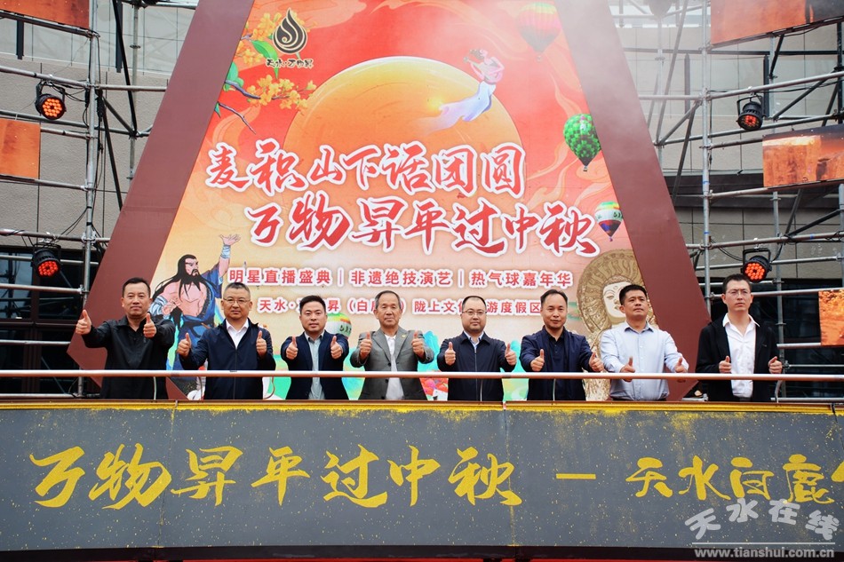 在熱烈的掌聲中,領(lǐng)導(dǎo)與嘉賓攜手推動鎏金沙,宣告活動正式啟動。隨著金色的沙流緩緩傾瀉,標志著“麥積山下話團圓 萬物昇平過中秋”系列活動正式揚帆起航。