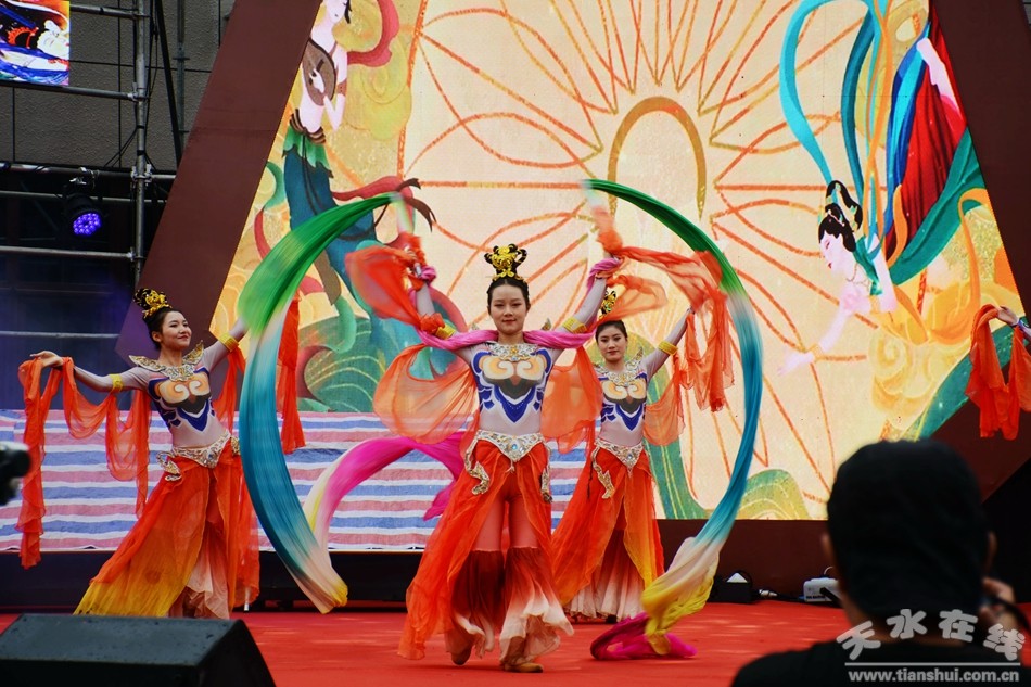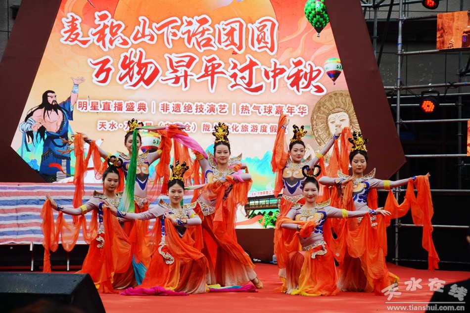 上午十時,現(xiàn)場人聲鼎沸,歌聲悠揚,一場氣勢恢宏的舞獅表演與如夢似幻的《敦煌飛天》舞蹈,為2024年“麥積山下話團圓 萬物昇平過中秋”系列活動拉開了華麗的序幕。