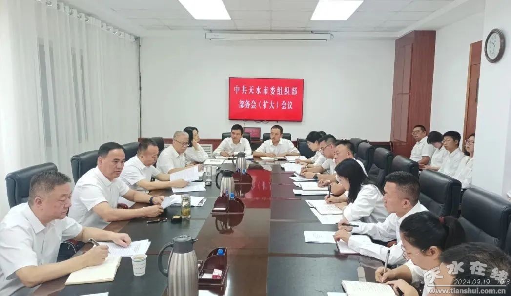 9月19日,市委組織部召開部務(wù)會(擴大)會議,學習習近平總書記視察甘肅重要講話和指示精神,傳達省委和市委相關(guān)會議部署,研究貫徹落實措施。市委常委、組織部部長胡志勇主持會議并講話。