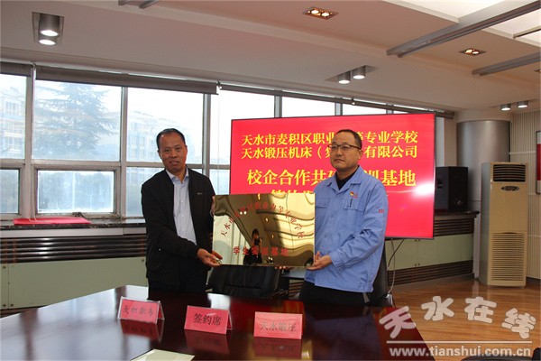 10月11日上午,天水鍛壓機(jī)床(集團(tuán))有限公司與天水市麥積區(qū)職業(yè)中等專業(yè)學(xué)校就校企合作、技能人才培養(yǎng)等事宜進(jìn)行了座談交流并舉行校企合作共建實訓(xùn)基地簽約暨授牌儀式。