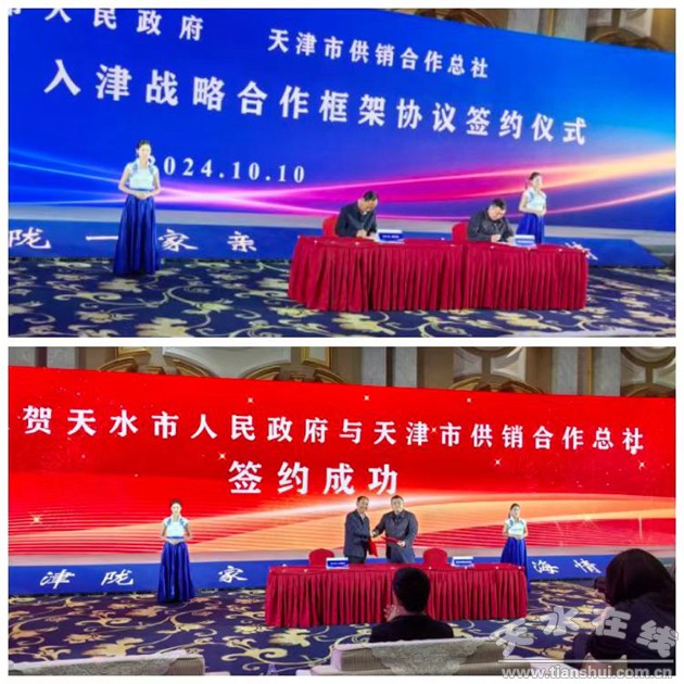 會上,天津市供銷合作總社理事會副主任、供銷津農(nóng)(天津)集團黨委書記、董事長郭琳,天水市委常委、副市長康泰來簽訂“甘味”出隴入津戰(zhàn)略合作框架協(xié)議。同時,宣布天水農(nóng)產(chǎn)品進天津的綜合商超、大型社區(qū)、農(nóng)貿(mào)市場、后勤食堂、“津農(nóng)薈”消費幫扶平臺的“五進”活動正式啟動。這將意味著架起了天水農(nóng)產(chǎn)品進入天津的直通車,通過雙方開展深度合作,共同搭建農(nóng)產(chǎn)品供應(yīng)鏈平臺,為豐富天津市民的“菜籃子”和“果盤子”,持續(xù)拓寬天水農(nóng)產(chǎn)品的銷售渠道,助力鄉(xiāng)村振興貢獻供銷力量。