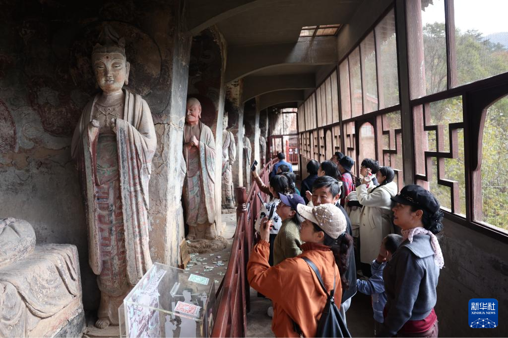 游客在麥積山石窟參觀(11月2日攝)。 |