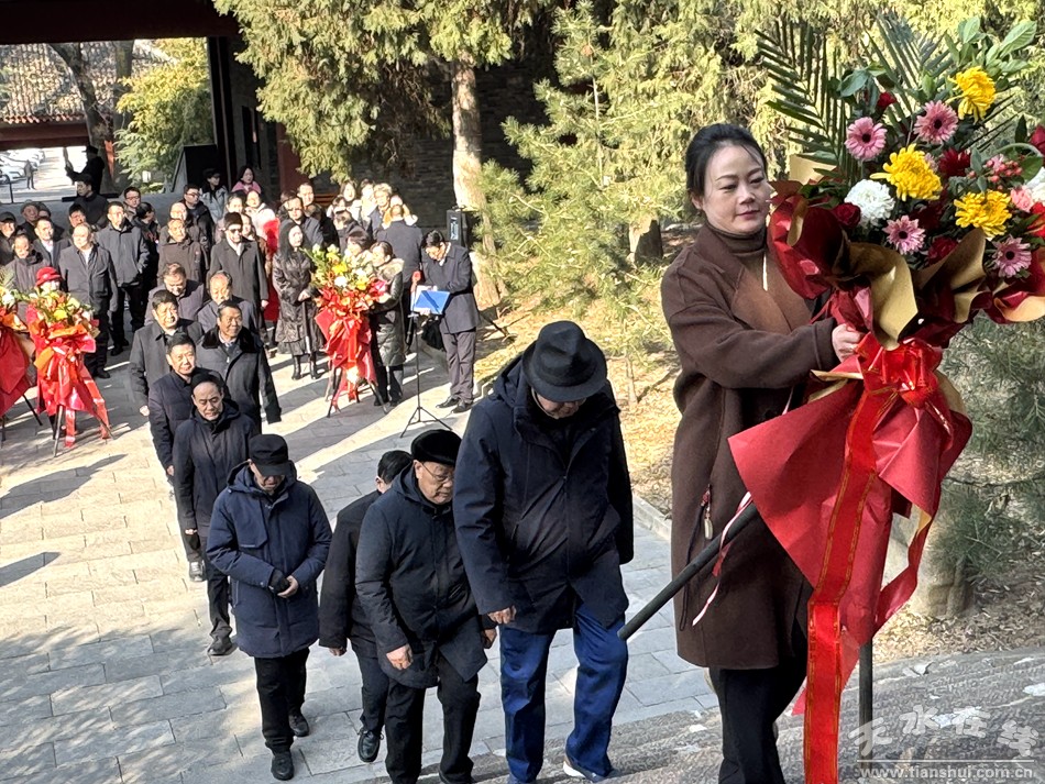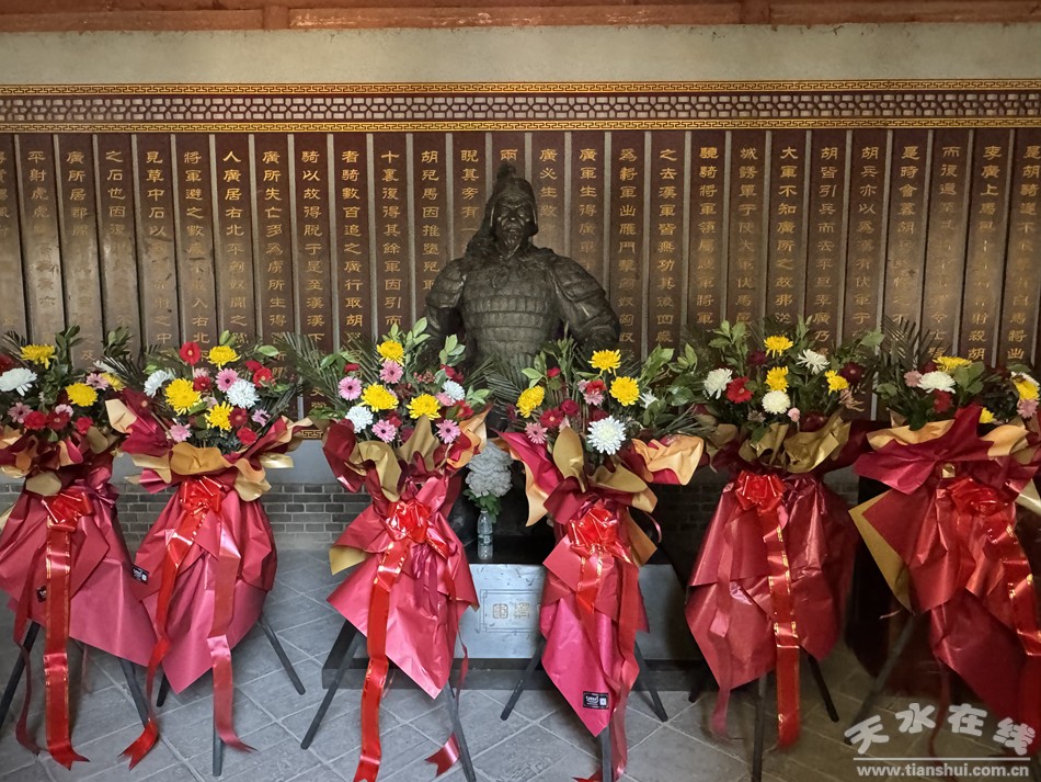 揭牌儀式后,各位嘉賓來到李廣墓景區(qū),向飛將軍李廣像行鞠躬禮,并敬獻(xiàn)花籃。