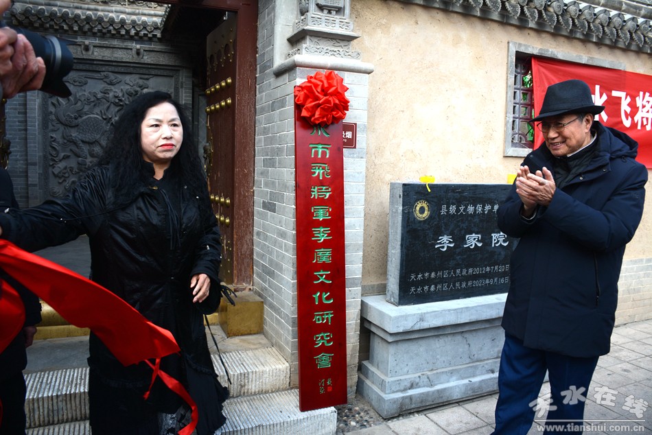 天水日?qǐng)?bào) 訊【新天水·天水日?qǐng)?bào)記者蔚軍平】12月15日,天水市飛將軍李廣文化研究會(huì)成立暨揭牌儀式在天水古城飛將軍廣場(chǎng)舉行。省政協(xié)原副主席張津梁,市政協(xié)副主席羅增芳,天水市飛將軍李廣文化研究會(huì)會(huì)長(zhǎng)張明芳分別為設(shè)在天水古城和李廣墓景區(qū)的天水市飛將軍李廣文化研究會(huì)揭牌,市人大常委會(huì)原主任李世榮出席活動(dòng)并宣布揭牌儀式開始。