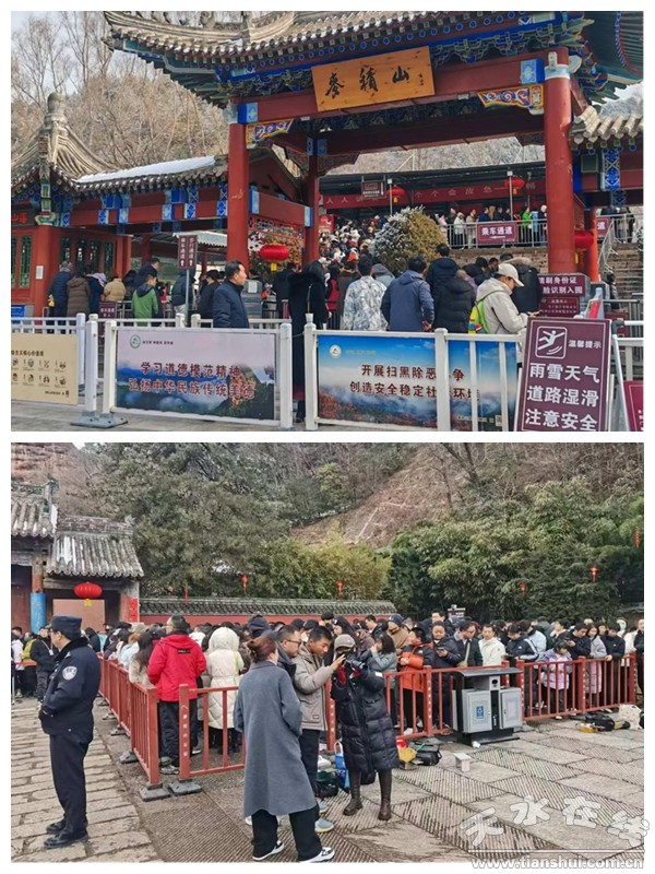 為從容應(yīng)對旅游高峰,麥積山景區(qū)不斷優(yōu)化旅游服務(wù)管理的關(guān)鍵環(huán)節(jié),嚴(yán)守重點(diǎn)區(qū)域安全責(zé)任,保障景區(qū)運(yùn)行平穩(wěn)有序。2月2日,正值正月初五,麥積山大景區(qū)游客接待量高達(dá)1.8萬人次。其中,麥積山景區(qū)接待1.13萬人次,仙人崖景區(qū)接待3016人次,凈土寺、溫泉等景區(qū)接待3650人次,駛?cè)刖皡^(qū)的旅游車輛超4300輛。