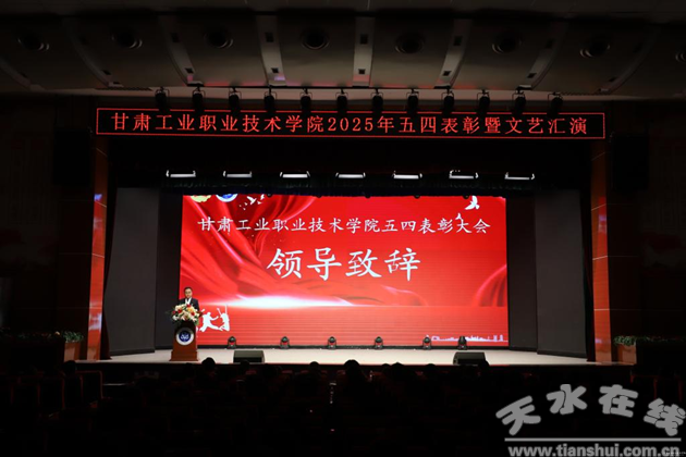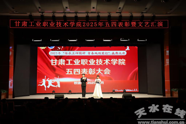 在紀(jì)念五四運(yùn)動106周年暨慶祝第76個五四青年節(jié)到來之際,為傳承和弘揚(yáng)五四精神,激勵青年學(xué)子以技能報國、以奮斗筑夢,4月28日晚,甘肅工業(yè)職業(yè)技術(shù)學(xué)院在大學(xué)生活動中心隆重舉行五四表彰暨文藝匯演。學(xué)校黨委委員、副院長胡森林出席表彰大會,黨委宣傳部、學(xué)工處、團(tuán)委負(fù)責(zé)人,各學(xué)院團(tuán)總支書記,團(tuán)委全體人員及獲獎師生代表等700余人齊聚一堂,共敘青春擔(dān)當(dāng)。
