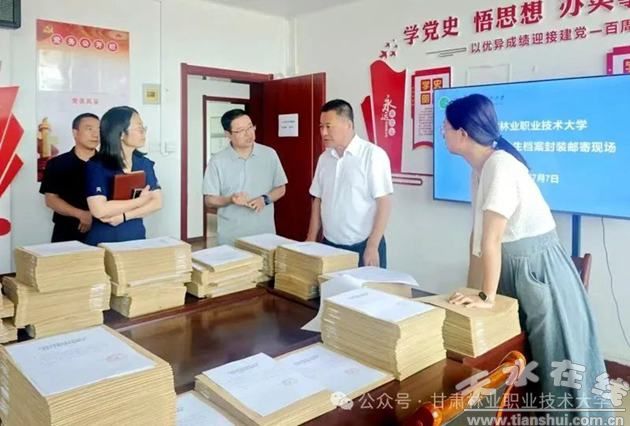 7月7日,黨委副書(shū)記、副校長(zhǎng)羅廣元一行檢查指導(dǎo)2025屆畢業(yè)生檔案寄遞工作。在檔案寄遞現(xiàn)場(chǎng),羅廣元仔細(xì)檢查了檔案封裝、信息核對(duì)、物流登記等關(guān)鍵環(huán)節(jié),深入了解檔案整理進(jìn)度、安全保障措施及寄遞渠道等情況。
