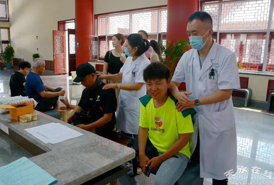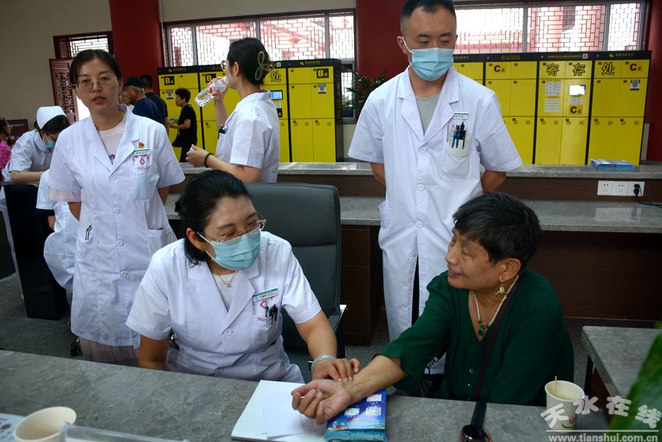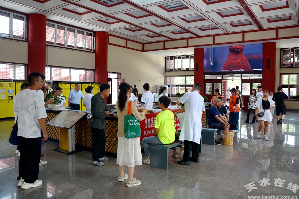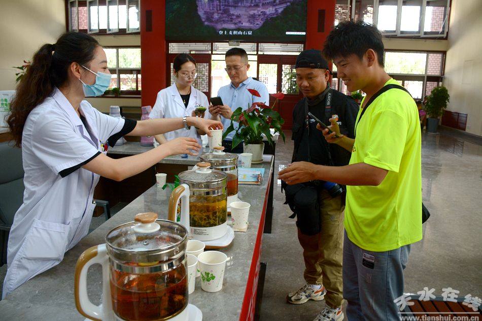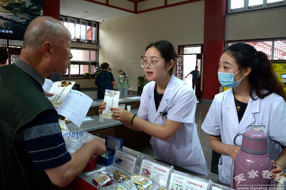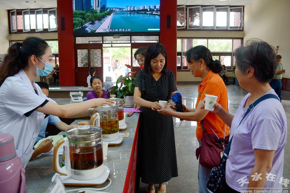 活動現(xiàn)場設(shè)置多項(xiàng)貼心服務(wù):來自天水市中醫(yī)醫(yī)院的專業(yè)中醫(yī)師調(diào)配的時令養(yǎng)生飲品免費(fèi)向游客供應(yīng),幫助大家驅(qū)散暑氣、調(diào)理身心;中醫(yī)從業(yè)者在現(xiàn)場提供穴位按摩、足浴療法、耳針療法、針灸推拿等服務(wù);此外,經(jīng)驗(yàn)豐富的中醫(yī)專家坐診,為游客解答關(guān)于中醫(yī)養(yǎng)生、日常保健、疾病預(yù)防等方面的疑問。