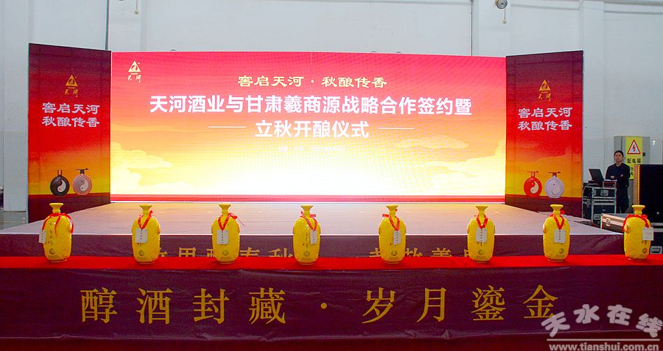 金秋送爽,佳釀飄香。8月9日,甘肅天河酒業(yè)有限公司與甘肅羲商源商貿(mào)有限公司簽訂戰(zhàn)略合作協(xié)議,并舉行立秋開釀儀式,標(biāo)志著清水白酒產(chǎn)業(yè)邁入強(qiáng)強(qiáng)聯(lián)合、集群發(fā)展的新階段。