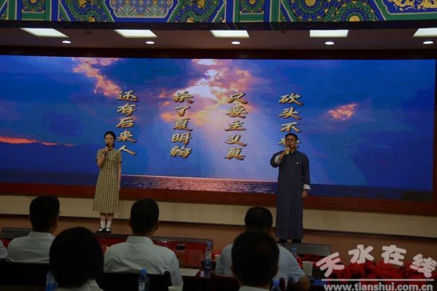 在紀(jì)念中國人民抗日戰(zhàn)爭暨世界反法西斯戰(zhàn)爭勝利80周年之際,為銘記抗戰(zhàn)歷史,弘揚(yáng)偉大抗戰(zhàn)精神,賡續(xù)紅色血脈,汲取奮進(jìn)力量,感悟初心使命,近日,市委直屬機(jī)關(guān)工委聯(lián)合市博物館、市融媒體中心舉辦天水市市直機(jī)關(guān)紀(jì)念中國人民抗日戰(zhàn)爭暨世界反法西斯戰(zhàn)爭勝利80周年紅色經(jīng)典誦讀暨“書香機(jī)關(guān) 悅讀賦能”青年理論學(xué)習(xí)分享活動成果展示。市直及駐市部省屬機(jī)關(guān)事業(yè)單位黨組織負(fù)責(zé)人、黨務(wù)干部、青年黨員代表共140余人參加活動。