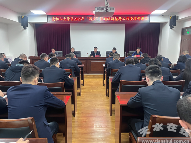 為認真貫徹落實中央和省市區(qū)關于全面做好2025年國慶假期旅游接待工作要求,9月28日,麥積山大景區(qū)組織召開國慶假期旅游接待工作專項動員部署會。管委會全體干部職工、各景區(qū)服務中心及麥積山文旅公司相關人員參加會議。
