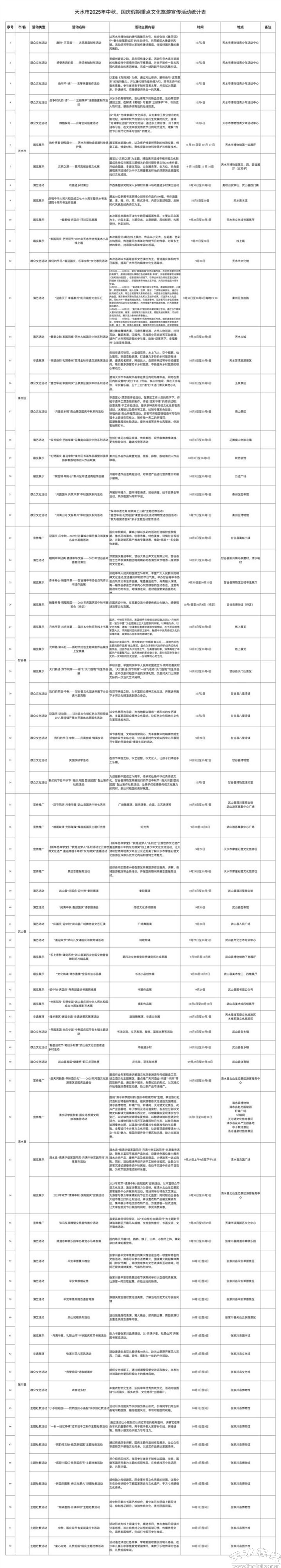 為優(yōu)化“雙節(jié)”天水市文旅產(chǎn)品供給,不斷豐富我市旅游內(nèi)涵和旅游業(yè)態(tài),特推出「宣傳推廣、演藝演出、展覽展示、非遺展演、群眾文化」五大類70余項(xiàng)文旅活動(dòng),為市民游客精心打造一場(chǎng)文旅服務(wù)盛宴,快收好這份攻略,一起解鎖天水的“雙節(jié)”限定快樂~