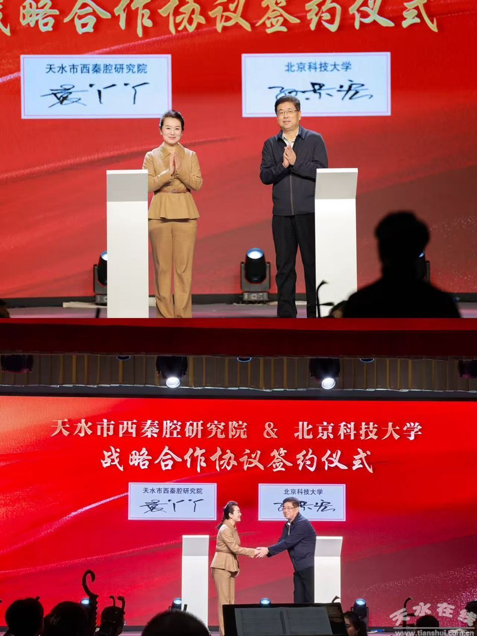 匯演期間,天水市西秦腔研究院與北京科技大學(xué)簽署了戰(zhàn)略合作協(xié)議,雙方將在資源共享、人才培養(yǎng)與文化傳播等方面開展深度合作。西秦腔研究院院長(zhǎng)袁丫丫為北科大師生作了《中國(guó)戲曲·西秦腔》專題講座,通過(guò)講解、示范與現(xiàn)場(chǎng)教學(xué)相結(jié)合的方式,增進(jìn)了高校師生對(duì)西秦腔藝術(shù)的了解與認(rèn)同,為傳統(tǒng)藝術(shù)在高校中的傳播搭建了橋梁。