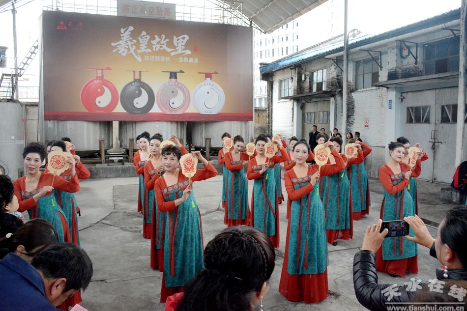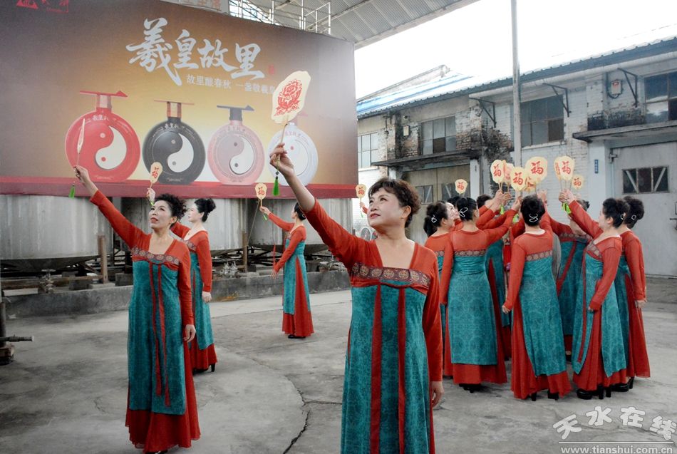 學(xué)員們一進入廠區(qū)大門,就迫不及待的進入了文藝展演環(huán)節(jié)。在臨時搭建的舞臺背景板印著“重陽尋味新釀·敬老共品羲皇”的醒目主題前,在灌裝車間門口,在岱廟神泉前,一路參觀,一邊演出,即使天氣有些冷,但老人們的笑臉溫暖而祥和。
