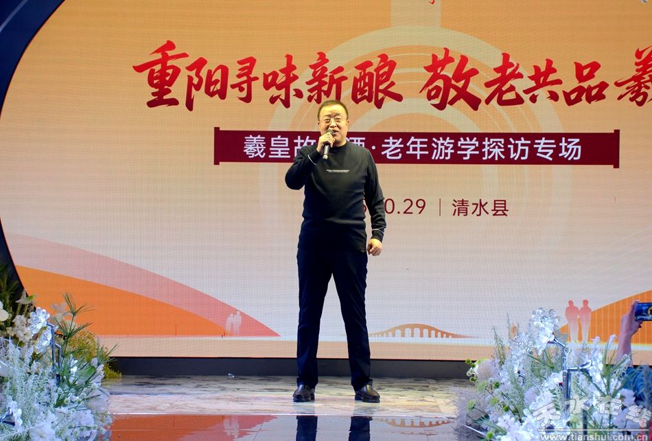 歲歲重陽,情暖金秋。當(dāng)傳統(tǒng)敬老佳節(jié)與千年酒文化相遇,一場承載著溫度與深度的“重陽尋味新釀·敬老共品羲皇——羲皇故里酒老年游學(xué)探訪專場”活動10月29日(重陽節(jié))在清水縣天河酒廠舉行。這場由天水市委老干部局、 天河酒業(yè)、甘肅羲商源商貿(mào)有限責(zé)任公司主辦,天水老年大學(xué)、天水市老年書畫研究會承辦的活動,不僅為近兩百位老年朋友送上了重陽節(jié)真摯祝福,更以“游學(xué)探訪”為紐帶,串聯(lián)起文化傳承、敬老關(guān)懷與品牌擔(dān)當(dāng),在秋日里的天河之畔,書寫了一曲傳統(tǒng)與溫情交融的動人樂章。