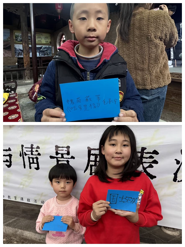 活動尾聲,孩子們領(lǐng)取卡片與畫筆,或?qū)懴隆俺蕴澥歉!薄暗聺權(quán)l(xiāng)鄰”等印象深刻的匾額文字,或創(chuàng)作專屬短句,隨后上臺展示并分享選擇初心,將文化收獲沉淀為獨(dú)特記憶。