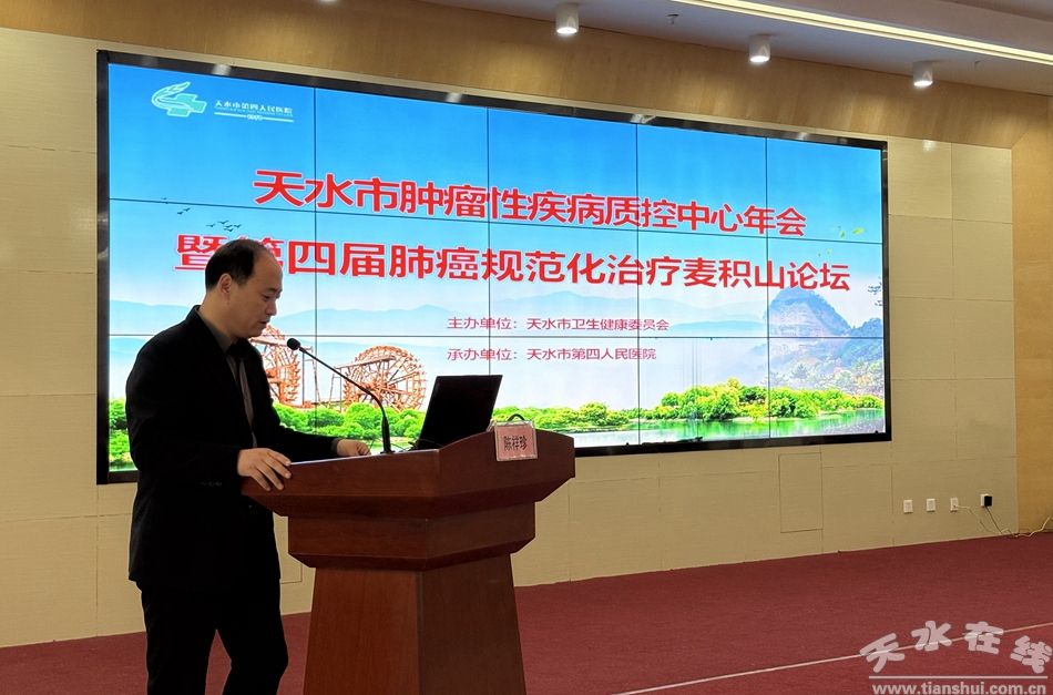 2025年11月22日,由天水市腫瘤性疾病質(zhì)控中心主辦、天水市第四人民醫(yī)院承辦的“腫瘤多學(xué)科診療系列會(huì)二期—天水站暨第四屆肺癌規(guī)范化治療麥積山論壇”在市四院5樓會(huì)議室隆重舉行,同期召開(kāi)天水市腫瘤性疾病質(zhì)控中心年會(huì)。來(lái)自西安交通大學(xué)第一附屬醫(yī)院的專家團(tuán)隊(duì)、全市各縣區(qū)醫(yī)療機(jī)構(gòu)腫瘤相關(guān)科室負(fù)責(zé)人及業(yè)務(wù)骨干齊聚一堂,以學(xué)術(shù)交流賦能技術(shù)提升,以質(zhì)控部署規(guī)范診療行為,為區(qū)域腫瘤防治事業(yè)注入強(qiáng)勁動(dòng)力。