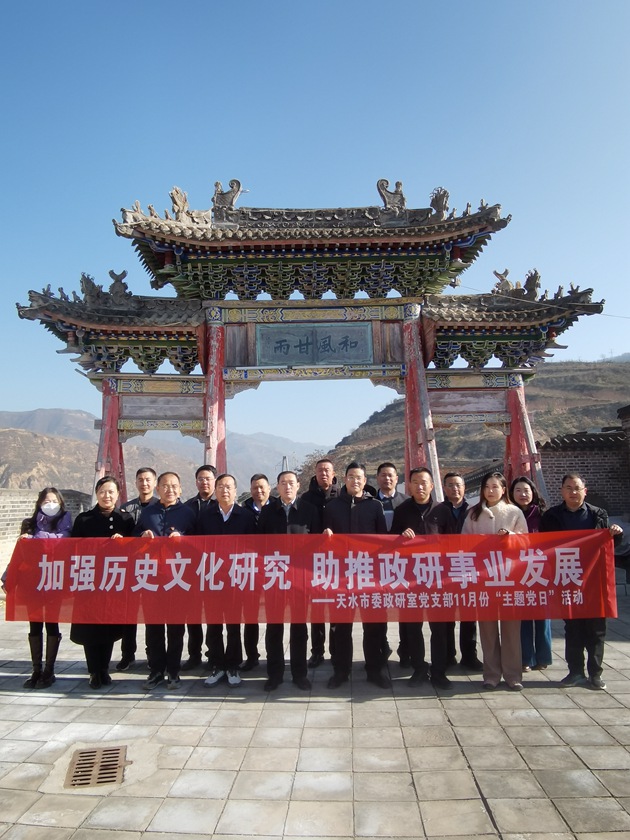 為深入挖掘天水歷史文化底蘊(yùn),推動(dòng)政研工作與地域文化深度融合,11月25日,天水市委政研室黨支部以“加強(qiáng)歷史文化研究 助推政研事業(yè)發(fā)展”為主題,赴麥積區(qū)三岔鎮(zhèn)開展實(shí)地調(diào)研主題黨日活動(dòng),全體黨員干部通過踏訪歷史遺跡、探尋文化根脈,為高質(zhì)量政研工作注入文化動(dòng)能。