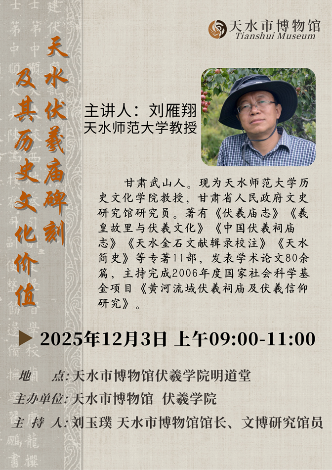 講座主題:天水伏羲廟碑刻及其歷史文化價(jià)值