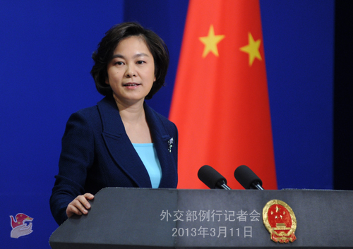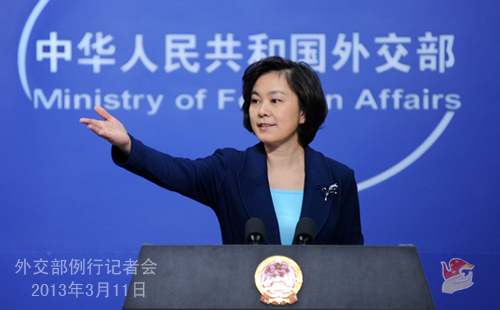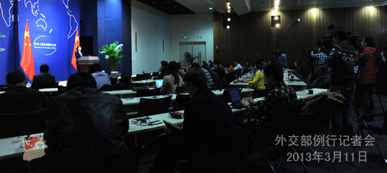 2013年3月11日,外交部發(fā)言人華春瑩主持例行記者會(huì)。