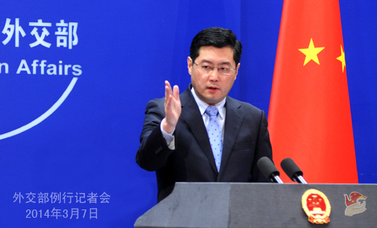 2014年3月7日,外交部發(fā)言人秦剛主持例行記者會(huì)。