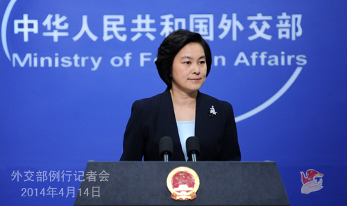 2014年4月14日,外交部發(fā)言人華春瑩主持例行記者會。
