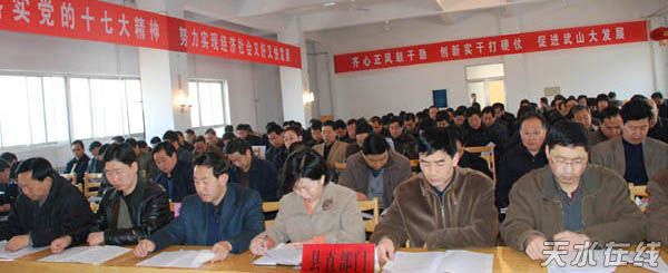 就如何做好今年的工作,溫利平書記強(qiáng)調(diào),一要正視發(fā)展困難,認(rèn)清發(fā)展形勢(shì),不斷增強(qiáng)加快武山發(fā)展的緊迫感和責(zé)任感。去年盡管取得了較好的成績,特別是新農(nóng)村建設(shè)、城鄉(xiāng)基礎(chǔ)設(shè)施建設(shè)等工作取得了突破性進(jìn)展,全縣加快發(fā)展的后勁不斷增強(qiáng)。但是我們?nèi)匀灰逍训卣J(rèn)識(shí)到,與周邊地區(qū)相比,與全縣人民群眾加快發(fā)展的強(qiáng)烈企盼相比,我們的工作還存在很多差距和不足,全縣改革發(fā)展還面臨著許多矛盾和問題。同時(shí),當(dāng)前我們加快發(fā)展還面臨著一些難得的機(jī)遇,黨的十七大提出繼續(xù)實(shí)施西部大開發(fā)戰(zhàn)略,中央財(cái)政支出結(jié)構(gòu)進(jìn)一步調(diào)整和優(yōu)化,投資更多地向中西部傾斜,中央制定的“三個(gè)明顯高于”、“三個(gè)調(diào)整”、“三個(gè)繼續(xù)加大”、“三個(gè)提高”和“三個(gè)大幅度”的強(qiáng)農(nóng)惠農(nóng)政策,天水市被納入西部開發(fā)重點(diǎn)區(qū)域“關(guān)中—天水”經(jīng)濟(jì)區(qū),全省實(shí)施“東部交通大會(huì)戰(zhàn)”,天定高速、天寶高速、天平鐵路開工建設(shè),我縣農(nóng)業(yè)主導(dǎo)產(chǎn)業(yè)的發(fā)展壯大,符合武山實(shí)際的既定發(fā)展思路,以及豐富的礦產(chǎn)、旅游、水熱等資源和區(qū)位優(yōu)勢(shì)等機(jī)遇和優(yōu)勢(shì),為我們充分利用國家優(yōu)惠政策,加快經(jīng)濟(jì)社會(huì)發(fā)展創(chuàng)造了良好條件。因此,在今年全面貫徹落實(shí)黨的十七大精神,實(shí)施“十一五”規(guī)劃的關(guān)鍵之年中,各級(jí)干部特別是領(lǐng)導(dǎo)干部要以嶄新的面貌、扎實(shí)的作風(fēng)和十足的干勁,團(tuán)結(jié)帶領(lǐng)全縣廣大黨員和人民群眾齊心協(xié)力,全力以赴抓好各項(xiàng)工作任務(wù)落實(shí),努力實(shí)現(xiàn)效益武山和諧武山建設(shè)的新突破。二要突出工作重點(diǎn),注重統(tǒng)籌兼顧,強(qiáng)力推進(jìn)全縣經(jīng)濟(jì)社會(huì)又好又快發(fā)展。當(dāng)前,我縣經(jīng)濟(jì)社會(huì)發(fā)展的良好勢(shì)頭正在形成,我們一定要緊緊抓住這一發(fā)展機(jī)遇,牢牢把握這一發(fā)展階段,以艱苦奮斗、爭創(chuàng)一流的務(wù)實(shí)精神和“人一之、我十之,人十之,我百之”的進(jìn)取精神,腳踏實(shí)地,負(fù)重拼搏,只爭朝夕,真抓實(shí)干,不斷推進(jìn)效益武山和諧武山建設(shè)。重點(diǎn)要以促進(jìn)農(nóng)村發(fā)展為主線,扎實(shí)推進(jìn)社會(huì)主義新農(nóng)村建設(shè);以培育優(yōu)勢(shì)產(chǎn)業(yè)為關(guān)鍵,切實(shí)加快城鎮(zhèn)經(jīng)濟(jì)發(fā)展;以統(tǒng)籌城鄉(xiāng)建設(shè)為目標(biāo),努力改善城鄉(xiāng)生產(chǎn)生活條件;以加強(qiáng)項(xiàng)目工作為支撐,不斷增強(qiáng)縣域經(jīng)濟(jì)發(fā)展活力;以擴(kuò)大公共服務(wù)為重點(diǎn),協(xié)調(diào)發(fā)展社會(huì)各項(xiàng)事業(yè);以解決民生問題為根本,全面加強(qiáng)和諧社會(huì)建設(shè)。三要圍繞發(fā)展大局,強(qiáng)化改革創(chuàng)新,進(jìn)一步加強(qiáng)和改進(jìn)黨的建設(shè)。實(shí)現(xiàn)今年的各項(xiàng)奮斗目標(biāo),關(guān)鍵在黨、關(guān)鍵在人。全縣各級(jí)黨組織要認(rèn)真學(xué)習(xí)貫徹黨的十七大精神,以提高各級(jí)領(lǐng)導(dǎo)班子和黨員干部領(lǐng)導(dǎo)發(fā)展的能力為核心,以改革創(chuàng)新的精神,全面加強(qiáng)和改進(jìn)黨的建設(shè),為加快效益武山和諧武山建設(shè)提供堅(jiān)強(qiáng)有力的組織保障和人才支撐。重點(diǎn)要深入學(xué)習(xí)科學(xué)理論,在努力提高各級(jí)干部貫徹落實(shí)科學(xué)發(fā)展觀的能力上取得新進(jìn)展;要深化干部人事制度改革,在著力推進(jìn)領(lǐng)導(dǎo)班子和干部隊(duì)伍建設(shè)上取得新進(jìn)展,特別要抓調(diào)整,加快干部年輕化進(jìn)程,要抓管理,加強(qiáng)干部隊(duì)伍的監(jiān)督,要抓交流,優(yōu)化干部工作環(huán)境,要抓培訓(xùn),提高干部整體素質(zhì);要?jiǎng)?chuàng)新工作思路和措施,在不斷提升基層黨組織建設(shè)整體水平上取得新進(jìn)展,特別要在大力實(shí)施農(nóng)村基層黨建提升促進(jìn)行動(dòng)上抓深入、求實(shí)效,要在扎實(shí)開展農(nóng)村黨員干部現(xiàn)代遠(yuǎn)程教育工作上抓深入、求實(shí)效,要在全面落實(shí)村干部待遇報(bào)酬上抓深入、求實(shí)效,要在大力創(chuàng)建基層黨建示范點(diǎn)上抓深入、求實(shí)效;要堅(jiān)持預(yù)防為主,標(biāo)本兼治,在進(jìn)一步加強(qiáng)黨風(fēng)廉政建設(shè)上取得新進(jìn)展。四要加強(qiáng)效能建設(shè),營造創(chuàng)業(yè)環(huán)境,全面推動(dòng)各項(xiàng)工作順利開展。重點(diǎn)要從加強(qiáng)思想教育入手,著力解決精神狀態(tài)問題,保持奮發(fā)有為的蓬勃朝氣;要從規(guī)范行政行為入手,著力解決依法行政問題,建設(shè)高效、務(wù)實(shí)、廉潔型機(jī)關(guān);要從標(biāo)本兼治入手,著力解決發(fā)展環(huán)境問題,促進(jìn)經(jīng)濟(jì)持續(xù)快速協(xié)調(diào)發(fā)展;要從完善制度建設(shè)入手,著力解決工作機(jī)制問題,建立