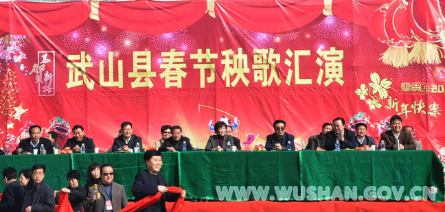 武山縣委書記溫利平、縣人大主任王永宏、縣長張建杰、縣政協(xié)主席頡衛(wèi)星等縣四大組織領(lǐng)導(dǎo)和群眾一起共同觀看了秧歌匯演。