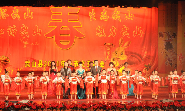 演出前,縣長索鴻賓作了熱情洋溢的致辭,他說,在中華民族的傳統(tǒng)佳節(jié)——春節(jié)來臨之際,我們歡聚一堂,載歌載舞,辭舊迎新,齊賀新春佳節(jié),共話美好未來。借此機會,我代表縣委、縣人大、縣政府、縣政協(xié),向在座的各位領(lǐng)導(dǎo),各位離退休老同志、勞動模范、專家學(xué)者和優(yōu)秀工作者,向工作在教育、衛(wèi)生、文化、建設(shè)、環(huán)衛(wèi)、工商、金融、文藝等各條戰(zhàn)線上的代表,致以誠摯的問候,并通過你們向武山46萬父老鄉(xiāng)親,向駐武部隊、武警官兵、公安干警、駐縣各企事業(yè)單位,向在外工作的武山籍人士,向所有關(guān)心、支持、幫助武山發(fā)展的各級領(lǐng)導(dǎo)、各界朋友,致以新春的問候和良好的祝愿!