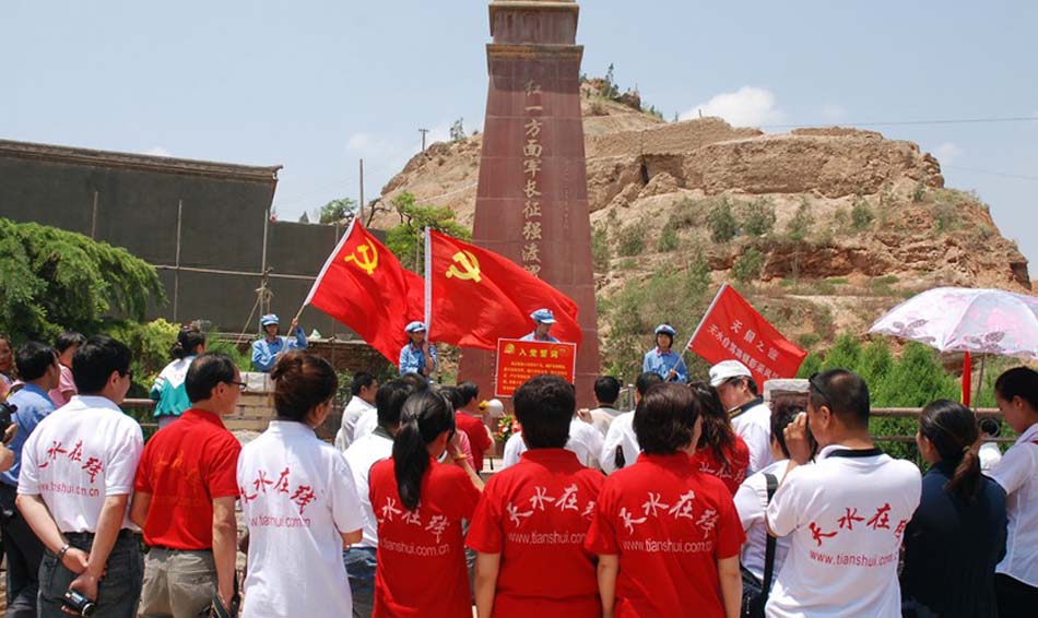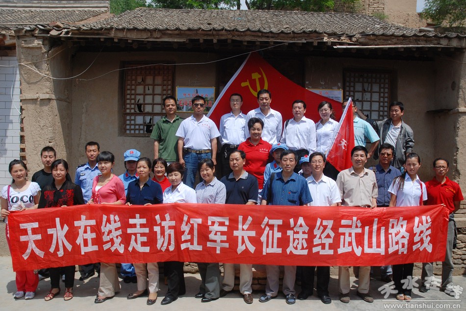 6月18日,在慶祝中國共產黨成立九十周年之際,天水在線走訪紅軍長征途經武山路線活動采訪團,先后走進費家山毛澤東長征舊居、武山縣蘇維埃政府舊址、紅一方面軍長征強渡渭河紀念碑處開展緬懷革命先烈、重走紅軍長征路、重溫入黨誓詞等活動。