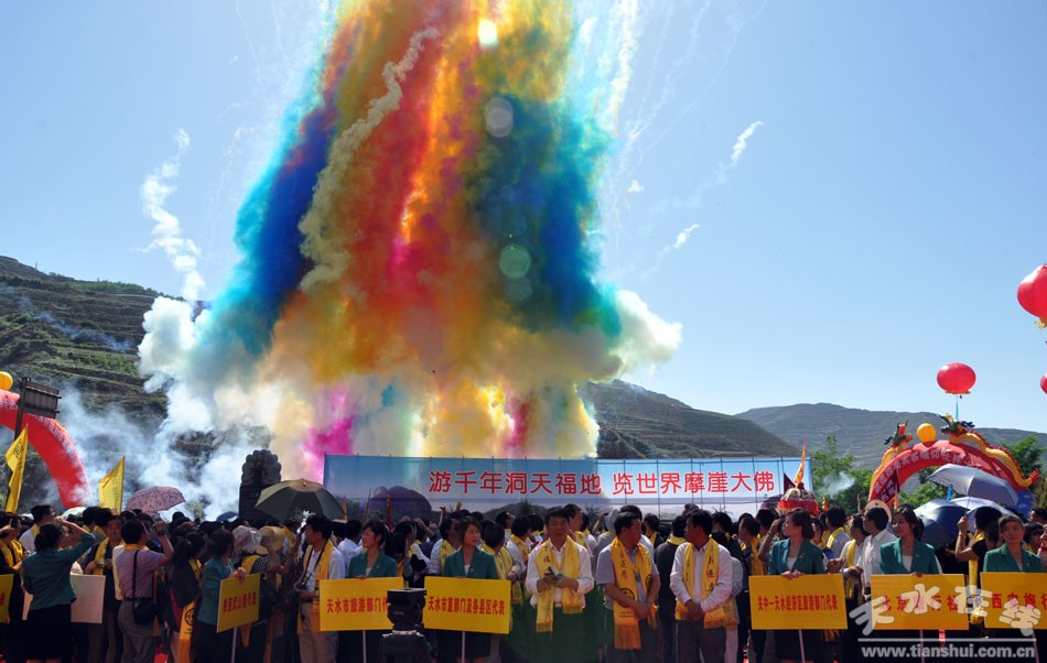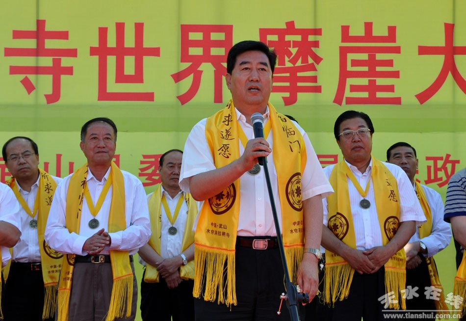 啟動儀式上,省政協(xié)副主席、天水市委書記張景輝宣布“祈福游”活動開幕,市委副書記張應(yīng)華、武山縣委書記張建杰分別代表市委、市政府和縣委、縣政府作了熱情洋溢的致辭,陜西武山同鄉(xiāng)會會長王守忠代表陜西武山同鄉(xiāng)會為水簾洞拉梢寺景區(qū)贈送了“厚德載物”匾額。啟動儀式由武山縣長索鴻賓主持。