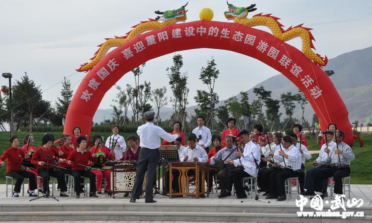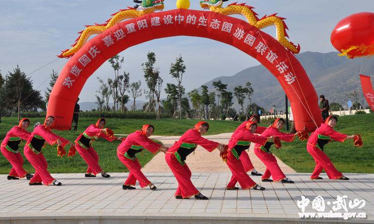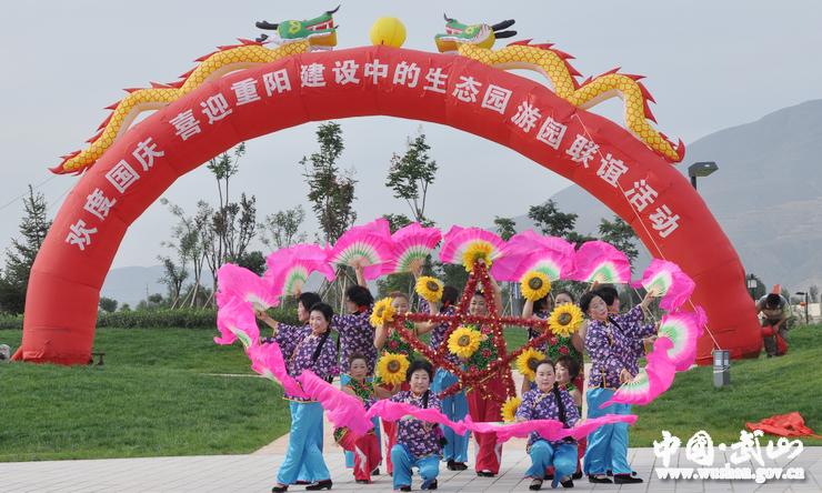 縣十三次黨代會(huì)和縣人大、政協(xié)“兩會(huì)”勝利閉幕,國慶、重陽佳節(jié)即將來臨。9月30日,武山縣在建設(shè)中的寧遠(yuǎn)生態(tài)園舉辦社會(huì)各界人士游園聯(lián)誼活動(dòng)?h四大組織領(lǐng)導(dǎo)和離退休老干部,省、市勞模代表,優(yōu)秀婦女代表,優(yōu)秀青年代表,省、市人大代表、政協(xié)委員,受市級(jí)以上獎(jiǎng)勵(lì)的黨員代表,優(yōu)秀科技人才代表,公安、武警、駐武部隊(duì)代表,福利院老人代表,寧愿生態(tài)園建設(shè)工人代表及廣大群眾歡聚在湖光山色、風(fēng)景宜人的寧遠(yuǎn)生態(tài)園,觀光游覽,并在三個(gè)親水平臺(tái)及周邊,傍水而坐,談笑風(fēng)生,興致勃勃地觀看旋鼓舞、武術(shù)、秧歌、腰鼓等精彩的民俗節(jié)目,歡度國慶,喜迎重陽。