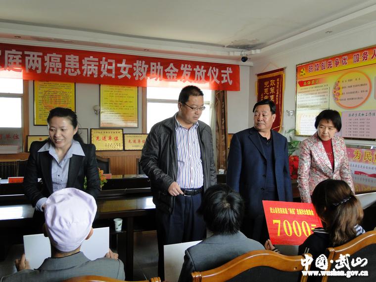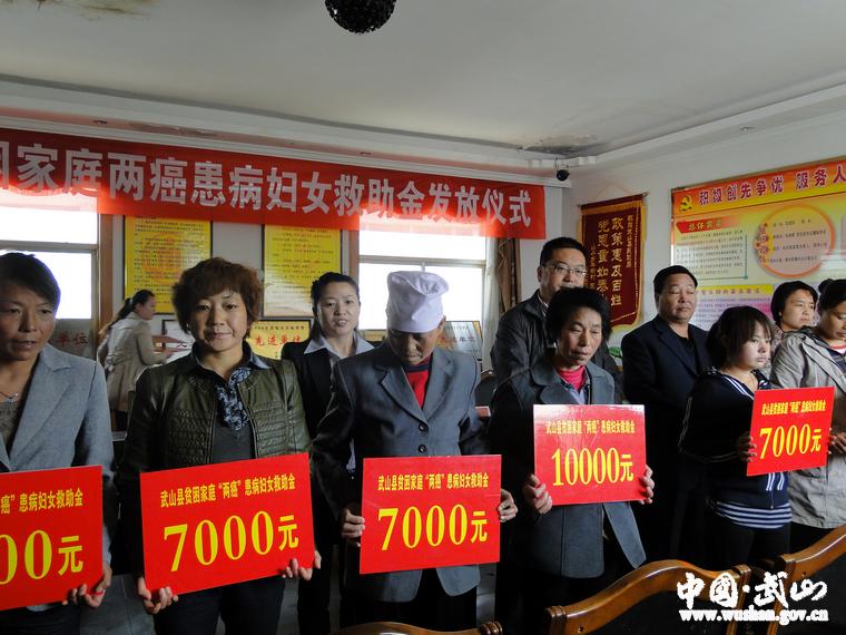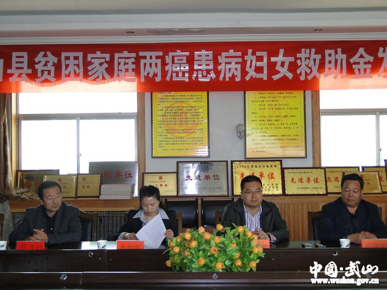4月25日,武山縣在民政局舉行貧困婦女“兩癌”救助資金發(fā)放儀式,縣委常委、組織部長王永剛,縣人大常委會副主任崔保德,副縣長李菊霞,縣政協(xié)副主席鐘玉紅,以及縣民政局、縣婦聯(lián)負責人參加了發(fā)放儀式。