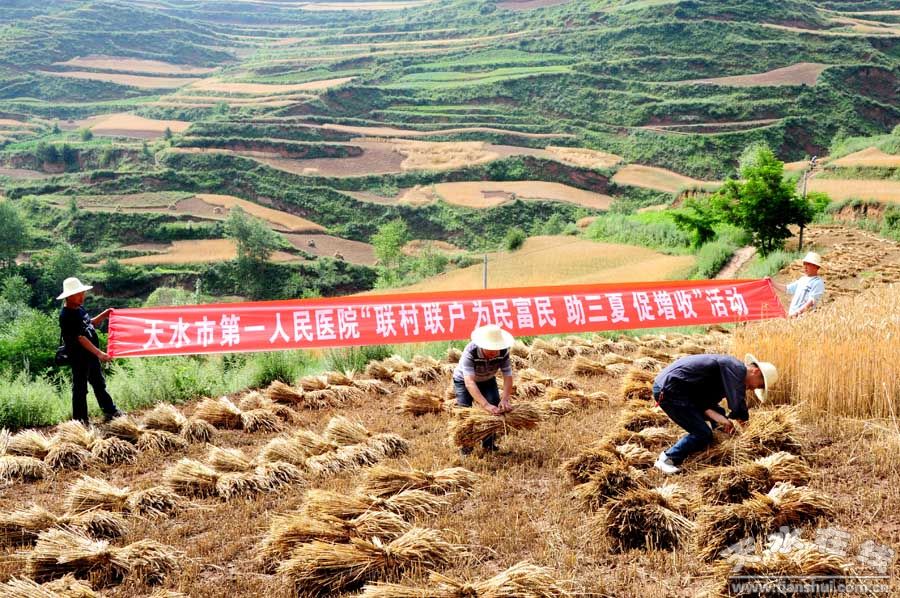7月14日一大早,天水市第一人民醫(yī)院20余名干部職工,在原醫(yī)院黨委副書(shū)記、正縣級(jí)干部劉增明的帶隊(duì)下,來(lái)到武山縣灘歌鎮(zhèn)代溝村開(kāi)展“幫三夏,促增收”活動(dòng),平時(shí)足不出戶的干部職工真正做了一回“麥客”。