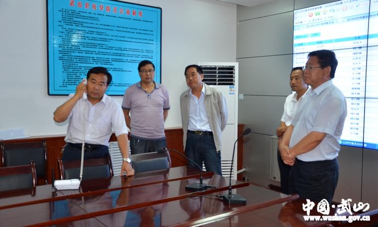 (縣長索鴻賓現(xiàn)場電話詢問鄉(xiāng)鎮(zhèn)降雨情況)