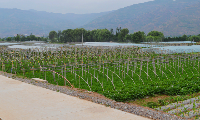 一個個整齊的大棚在陽光下熠熠生輝,一畦畦長勢旺盛的蔬菜鮮嫩誘人,一輛輛滿載鮮菜的大貨車來回穿梭……