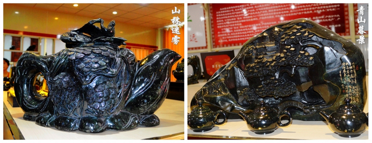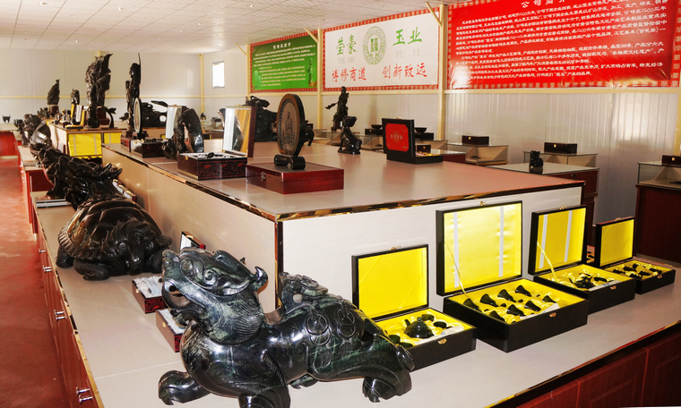 在瑩豪玉器展廳,那大大小小形質(zhì)俱美的夜光杯,清一色的墨綠,齊刷刷地排成一排,在那昏暗的光線里,更加墨綠了,有點(diǎn)唐宋的味道,有點(diǎn)時(shí)間發(fā)舊的味道,似乎想把這座小鎮(zhèn)運(yùn)送到一個(gè)久遠(yuǎn)的王朝似的!捌咸衙谰埔构獗,馳名中外瑩豪牌”瑩豪為鴛鴦?dòng)裉赜械臏貪櫤蜁r(shí)光流轉(zhuǎn)的古老氣息而享譽(yù)隴上。