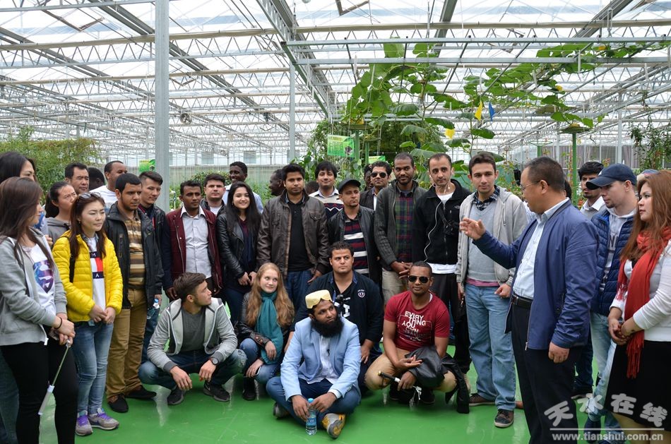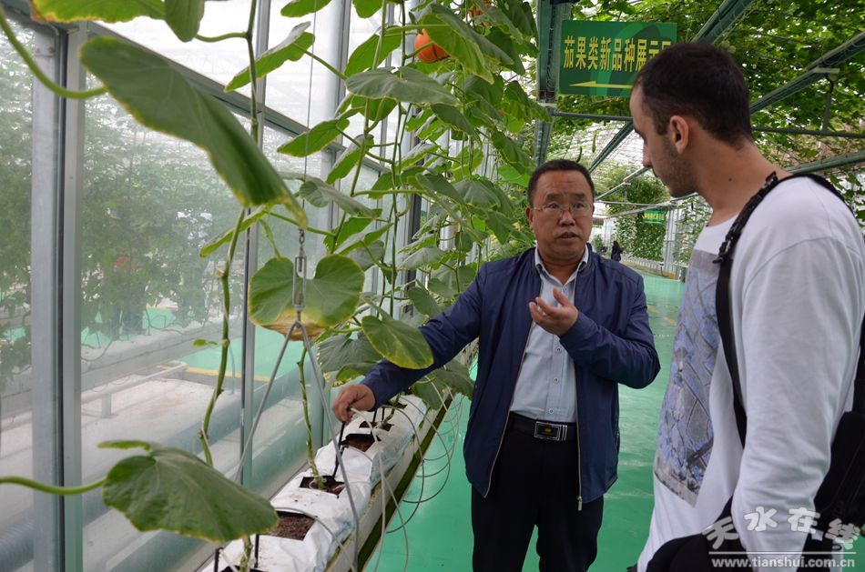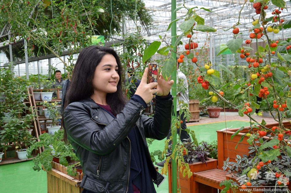 碩大的南瓜,鮮艷的水果椒,翠綠的蔬菜墻,先進的無土栽培技術,讓一批外國留學生興奮不已,紛紛拍照,留下美好的瞬間。5月26日,來自蘭州理工大學、蘭州大學的76名東南亞、中亞、非洲、中東等地的留學生參觀了武山縣蔬菜產(chǎn)業(yè)科技示范園區(qū)。