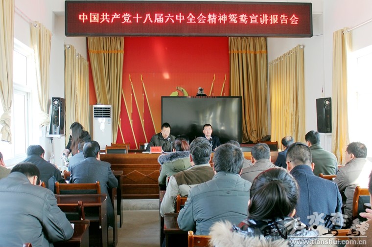 12月29日,武山縣委常委、紀委書記張仲牛到鴛鴦鎮(zhèn)宣講黨的十八屆六中全會精神。鴛鴦鎮(zhèn)副科級以上領(lǐng)導干部,各村駐村干部,各村、社區(qū)書記(副書記),共計80余人聆聽報告。鎮(zhèn)黨委書記韓永紅主持會議。