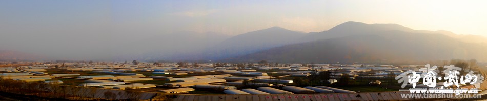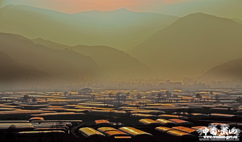 夕陽(yáng)下的武山蔬菜塑料大棚