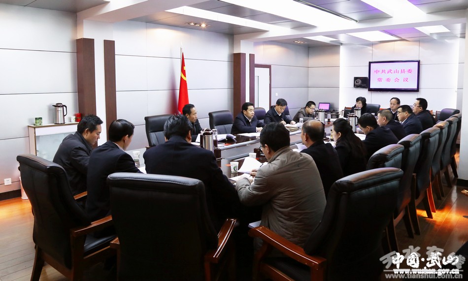 1月23日,武山縣委書記索鴻賓主持召開縣委常委會會議,傳達學(xué)習(xí)中共中央《縣以上黨和國家機關(guān)黨員領(lǐng)導(dǎo)干部民主生活會若干規(guī)定》、中紀委十八屆七次全會、省紀委十二屆七次全會、全省市縣紀委書記培訓(xùn)班精神,省十二屆人大六次會議、省政協(xié)十一屆五次會議和全市安全生產(chǎn)暨2017年安委會第一次全體會議精神,討論審定《中共武山縣委常委會2016年度民主生活會方案》和《中共武山縣委常委班子對照檢查材料》,聽取中共武山縣委常委會民主生活會準(zhǔn)備情況的匯報。