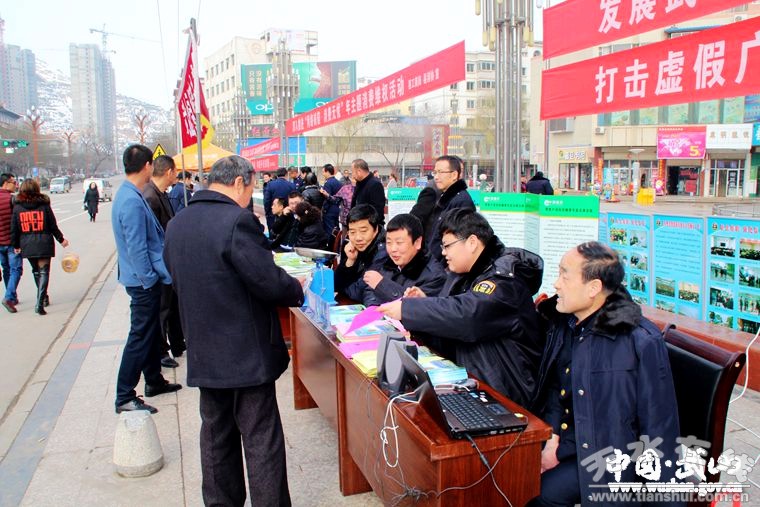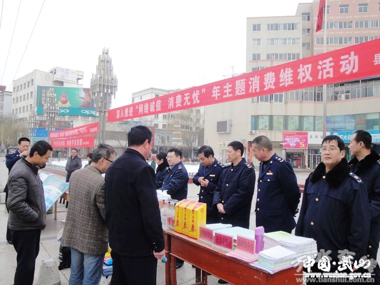 3月15日,武山縣消費者協(xié)會、縣工商局聯(lián)合食藥監(jiān)、質(zhì)檢、衛(wèi)生、鹽業(yè)、郵政、電信、移動、聯(lián)通等理事單位,在縣城寧遠廣場開展了以“網(wǎng)絡(luò)誠信 消費無憂”為主題的大型“3.15”宣傳咨詢活動,隆重宣傳3.15國際消費者權(quán)益日和新《消法》正式頒布實施3周年。
