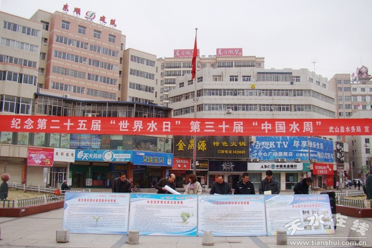 3月22日是第25個“世界水日”,3月22日至28日是第30屆“中國水周”。今年我國的宣傳主題是“落實綠色發(fā)展理念全面推行河長制”。3月22日,武山縣在寧遠廣場開展主題宣傳活動,呼吁人們節(jié)水護水,共同建設(shè)生態(tài)文明家園。