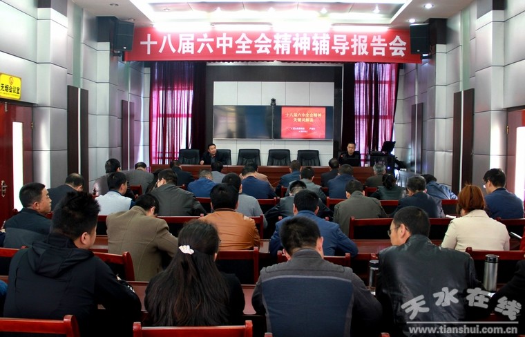 為深入學(xué)習(xí)貫徹黨的十八屆六中全會精神,扎實推進(jìn)“兩學(xué)一做”專題學(xué)習(xí)教育深入開展,4月6日,武山縣委宣傳部、縣委政法委、縣委統(tǒng)戰(zhàn)部、縣委農(nóng)工部等單位邀請縣委黨校老師蘆迎生作了黨的十八屆六中全會精神專題輔導(dǎo)講座。