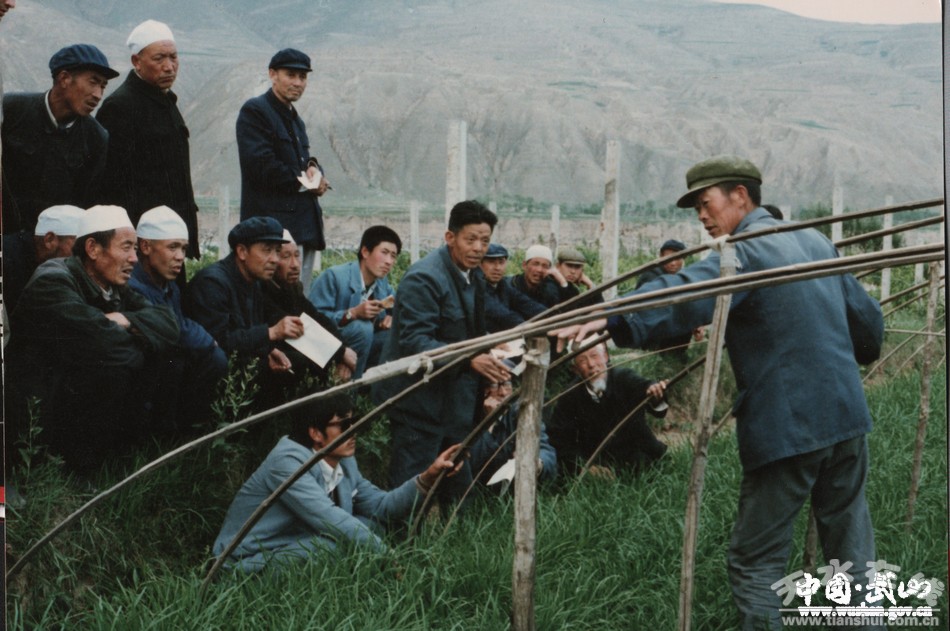 為了有計(jì)劃、有組織的發(fā)展農(nóng)村經(jīng)濟(jì),全縣先后組建了農(nóng)民專業(yè)技術(shù)研究會(huì)132個(gè),其中蔬菜專業(yè)研究會(huì)16個(gè)。1992年3月19日,時(shí)任甘肅省委書(shū)記的顧金池視察了武山農(nóng)民專業(yè)研究會(huì),并給洛門(mén)鎮(zhèn)蔬菜研究會(huì)題詞“全能服務(wù),促進(jìn)經(jīng)濟(jì)發(fā)展”。為了廣泛培養(yǎng)農(nóng)村人才,縣委組織部牽頭,縣科協(xié)、民政局、縣黨校配合,確定了萬(wàn)名農(nóng)村人才培訓(xùn)計(jì)劃,采取集中培訓(xùn)和深入農(nóng)村舉辦多種類(lèi)型的技術(shù)培訓(xùn)班,培養(yǎng)了一大批懂技術(shù)、用得上、留得住的農(nóng)村技術(shù)隊(duì)伍。有一大批農(nóng)民在農(nóng)村“能人”的帶動(dòng)下,靠蔬菜生產(chǎn)實(shí)現(xiàn)了脫貧致富。那還是1984年5月14日,縣委組織部、縣科協(xié)與縣委黨校聯(lián)合舉辦技術(shù)培訓(xùn)班,有幸請(qǐng)到了著名中醫(yī)專家、省政協(xié)常委裴慎老先生,他愿為家鄉(xiāng)的發(fā)展付出一腔心血,并賦詩(shī)一首:“正是清和五月天,武城山下匯群賢,風(fēng)調(diào)雨順歌聲滿,物阜民康得正傳,白發(fā)未忘報(bào)國(guó)志,青春依舊戀家園,清風(fēng)兩袖無(wú)長(zhǎng)物,聊表微誠(chéng)三指禪”。以此勉勵(lì)鄉(xiāng)親們奮發(fā)進(jìn)取,為全縣經(jīng)濟(jì)快速發(fā)展貢獻(xiàn)力量。止1991年底,在縣政府領(lǐng)導(dǎo)下,全縣有463名農(nóng)民技術(shù)人員獲得了縣政府考評(píng)頒發(fā)的技術(shù)職稱證書(shū)。“農(nóng)研會(huì)”和農(nóng)村“能人”在蔬菜生產(chǎn)中的作用得到充分發(fā)揮。1992 年9月25日,洛門(mén)鎮(zhèn)蔬菜研究會(huì)獲得了“全國(guó)十佳”稱號(hào),其參會(huì)代表在中南海紫光閣受到了黨和國(guó)家領(lǐng)導(dǎo)人的親切接見(jiàn)。