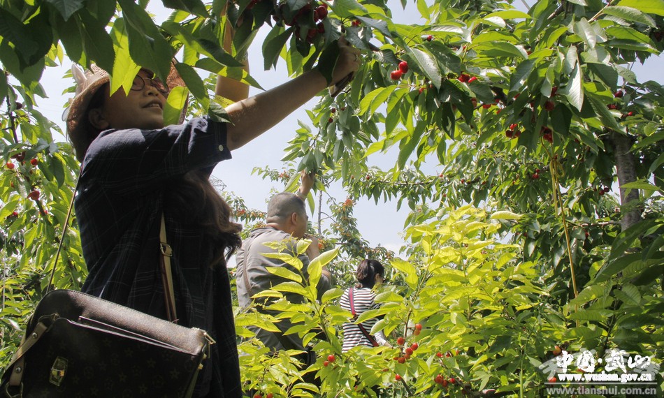 除了摘櫻桃、賞美景,還可以走進頗具特色的休閑農莊,品嘗地道的農家菜、柴火雞,還可以喝茶聊天、K歌娛樂!耙皇莵砀惺芤幌绿飯@風光,體驗采摘的樂趣,二來,這里現(xiàn)摘的櫻桃特別好吃,在市場上買的遠沒有這么新鮮,還有這里的農家菜也很美味,這種天然的味道是城里的飯店遠遠不及的!焙烷|蜜結伴而來的陳女士說,在這樣的場合,以這種方式和閨蜜相聚約會、聯(lián)絡感情,“很貼心,和夏天更配”。 (聯(lián)系人:馬清緒 電話:15095695301)