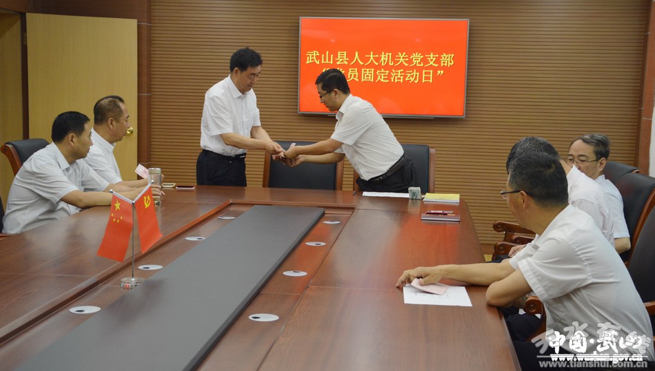 7月7日,武山縣人大機(jī)關(guān)黨支部開展 “黨員固定活動日”活動,縣人大常委會黨組書記、主任張璞銀,縣人大常委會黨組成員、副主任蔡永彥、張國華、康永、謝勇,黨組成員周金寶以普通黨員身份參加活動。